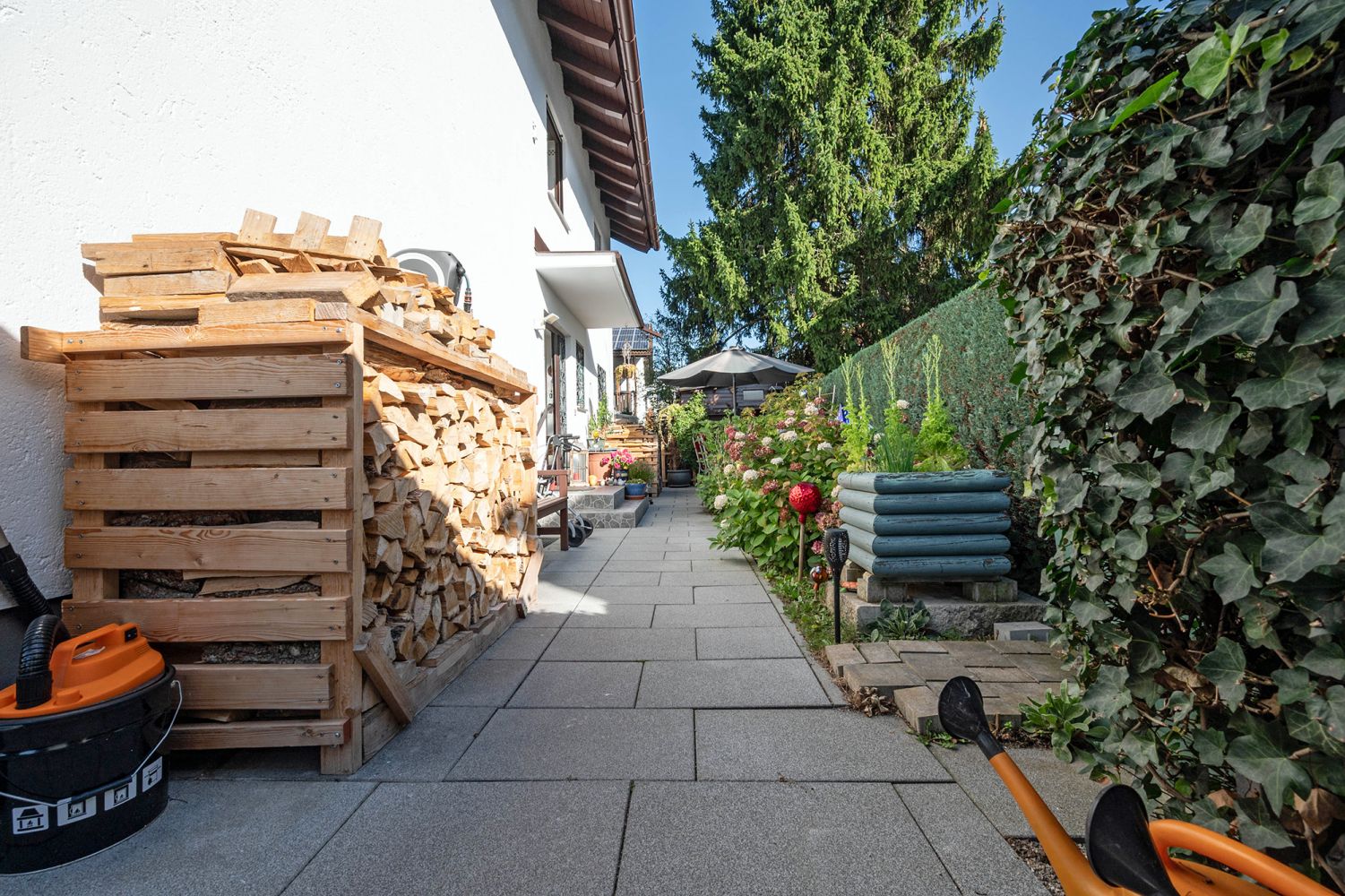 + Terrasse und Pflasterung Zuwege, Stellplatz erneuert in 2015
