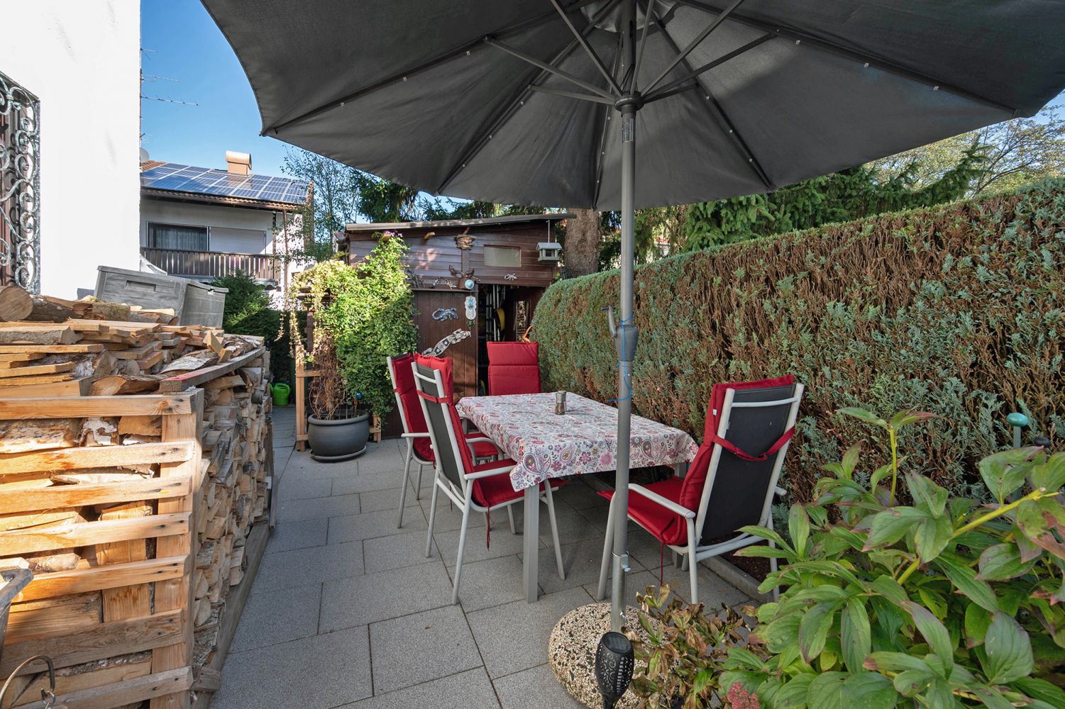 + optimal nach Süden ausgerichtete Terrasse mit vorgelagertem, liebevoll angelegtem Garten