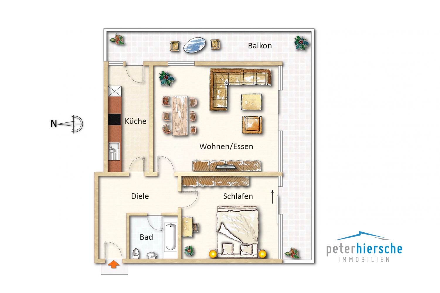 Die Objektdaten sowie sonstige Angaben zum Objekt beruhen auf erteilten Angaben des Auftraggebers/Eigentümers. Grafische Darstellungen dienen dazu, Ihnen das Projekt verständlich darzulegen. Diese Darstellungsform erhebt keinen Anspruch auf Detailtreue. Die Möblierung in den Grundrissdarstellungen sowie in den Visualisierungen stellt lediglich einen Einrichtungsvorschlag dar und ist nicht im Angebot enthalten. Die Größe von Balkonen und Terrassen fließt zur Hälfte in die Wohnfläche mit ein. Flächenangaben sind circa-Angaben und beruhen auf den vom Eigentümer mitgeteilten Informationen. Eine Haftung für deren Richtigkeit und Vollständigkeit kann deshalb nicht übernommen werden.