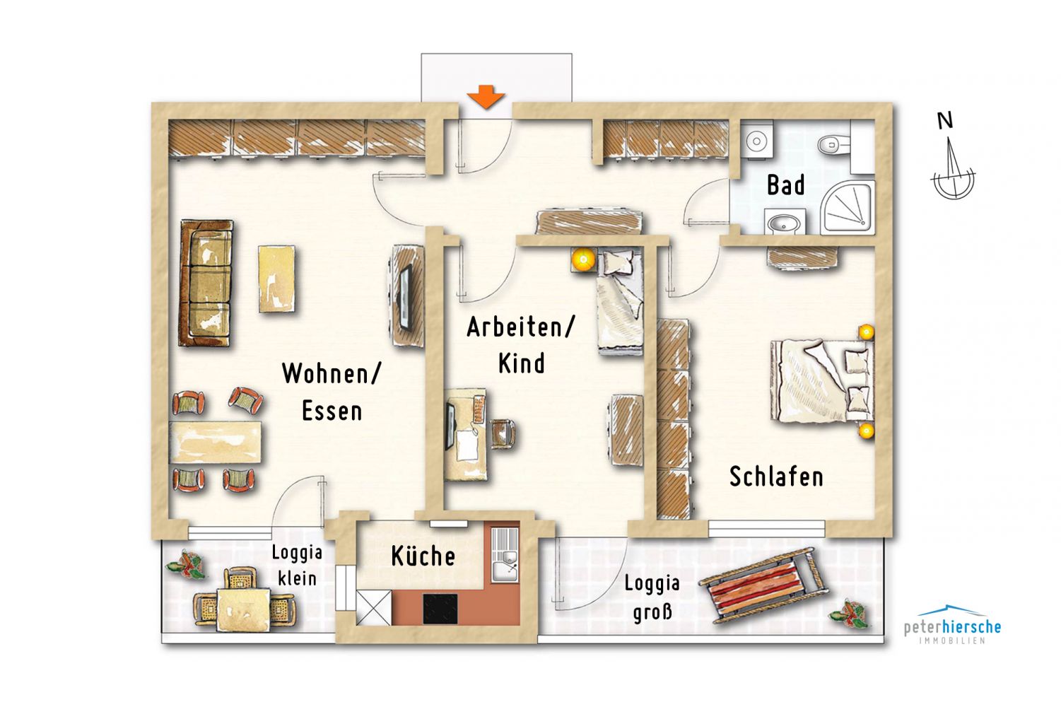 Die Objektdaten sowie sonstige Angaben zum Objekt beruhen auf erteilten Angaben des Auftraggebers/Eigentümers. Es obliegt dem Käufer, diese selbst zu prüfen. Eine Haftung für Richtigkeit, Vollständigkeit und Aktualität dieser Daten und Angaben ist ausgeschlossen. Grafische Darstellungen dienen dazu, Ihnen das Projekt verständlich darzulegen. Diese Darstellungsform erhebt keinen Anspruch auf Detailtreue. Die Möblierung in den Grundrissdarstellungen sowie in den Visualisierungen stellt lediglich einen Einrichtungsvorschlag dar und ist nicht im Angebot enthalten, soweit im Angebot nicht explizit angegeben ist, dass bestimmte Einrichtungsgegenstände im Kaufpreis der Immobilie eingeschlossen sind. Die Größe von Balkonen und Terrassen fließt zur Hälfte in die Wohnfläche mit ein. Flächenangaben sind circa-Angaben und beruhen auf den vom Eigentümer überlassenen Unterlagen, Daten und Informationen. Eine Haftung für deren Richtigkeit und Vollständigkeit kann deshalb nicht übernommen werden. Der Zwischenverkauf ist vorbehalten.
